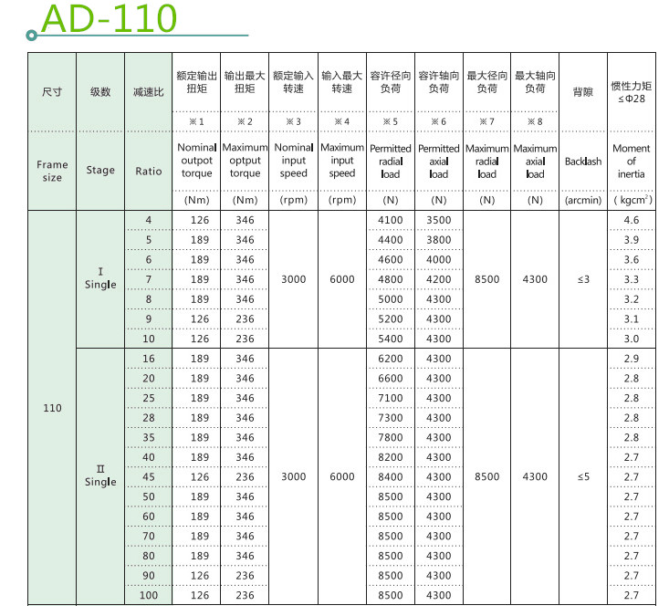 傳動比:Ⅰ級:4, 5, 7, 10 Ⅱ級:20, 25, 35, 40, 50, 70, 100