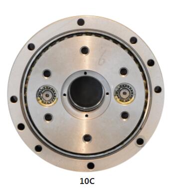 直齒輪與曲柄軸相連接,變為第二減速部的輸入。在曲柄軸的偏心部分,通過滾動軸承安裝RV齒輪。另外,在外殼內側僅比RV齒輪數多一個的針齒,以同等的齒距排列。